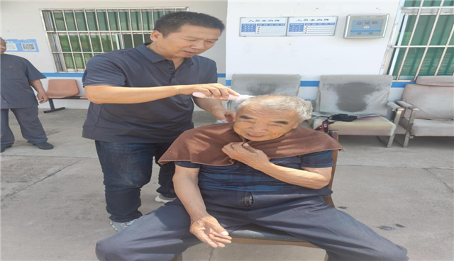 (党员服务日为村民理发)