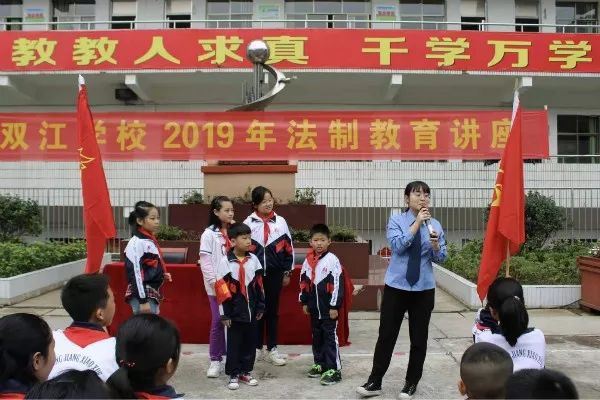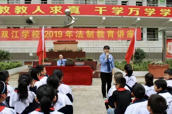 初秋的早晨,天气微凉,现场气氛却是分外热烈活跃,学生们都听得津津有味。旁听的双江学校校长看着这个场景本来有点紧张的心情顿时放松下来了。开展法制讲座,呵护未成年人健康成长,进一步强化广大学生的法治观念,十分重要,但是开展之初,刘校长也有点担心尚且年幼的学生们是否能接受得了专业且有点枯燥的法律知识。