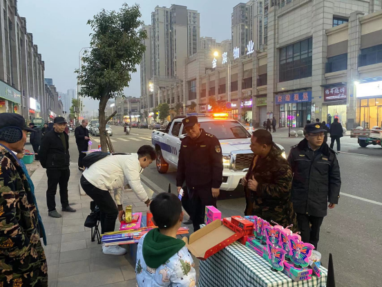 (2)突出重点,强化巡查。加大重点时段、重点区域巡查力度,对违规占道经营、沿街摆设及流动兜售烟花爆竹的行为进行劝离,对违规燃放烟花爆竹的行为及时批评教育和制止劝阻。截至目前,共出动执法人员200余人次,劝离烟花销售流摊60余个,劝阻燃放烟花爆竹20余起。