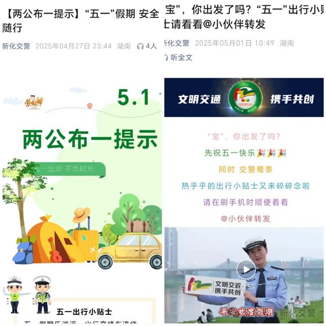 “五一”假期,草长莺飞、春和景明。新化县公安局交警大队在县委县政府的坚强领导下,严格落实上级部门要求,结合辖区工作实际,狠抓各项工作落实,围绕重点时段、关键部位,精确警力部署,强化疏导管控,圆满完成“五一”期间道路交通安全保障工作。他们是人潮中的守望者,是车流中的护航人,用实际行动践行忠诚与担当,护航一路好春光……