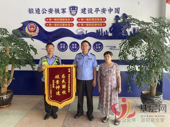 中国基层网9月2日讯(通讯员 刘惠芳)8月29日,湖南省邵阳县公安局交警大队事故处理中队收到一面印着“为民解忧 破案神速”的锦旗,当事人感谢民警快速破获8月4日的交通肇事逃逸案,维护了群众的合法权益。