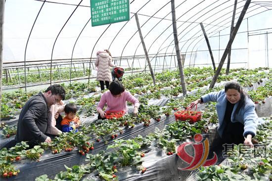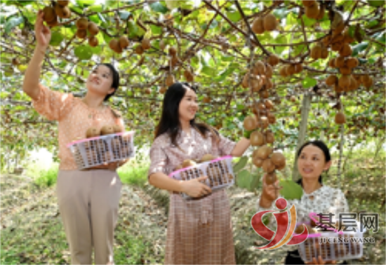 图为游客在金石桥镇猕猴桃基地采摘猕猴桃。