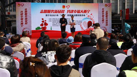 为深入学习贯彻党的十九大和十九届二中、三中、四中、五中全会精神,贯彻落实习近平总书记关于学雷锋和志愿服务的重要指示精神以及省委十三届九次全会、市委十四届十二次全会精神,团结和带领全市广大团员青年、志愿者以更昂扬的姿态喜迎中国共产党成立100周年,弘扬新时代雷锋精神,投身志愿服务新征程,助力基层社会治理,服务人民群众,共同创造美好生活,3月5日下午,共青团西宁市委、市文明办、FM97.2青海交通音乐广播联合在城西区唐道637火车头广场组织开展西宁市2021年“3·5”学雷锋主题实践活动。
