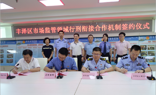 揭牌仪式上,泉州市市场监管综合执法支队、泉州市丰泽区人民检察院、泉州市公安局丰泽分局、泉州市丰泽区市场监督管理局四方代表签订了“丰泽区市场监管领域行刑衔接合作协议”,明确了联络点运行模式和工作方案,进一步理顺完善了丰泽区市场监管领域行政执法与刑事司法衔接工作机制。
