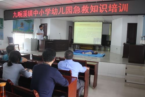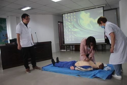演练结束后,镇卫生院院长赵子兵、防疫中心主任向芳等同志给全体教职工进行紧急抢救知识培训,详细介绍了心肺复苏术紧急救护的基本知识、注意事项和实际操作步骤等。向主任进行单人“徒手心肺复苏术”摸拟操作讲解和演示,教职工们也积极参与了心肺复苏术的操作练习。