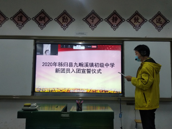 为进一步激发广大青少年热爱党、热爱共青团的思想感情,增强团员青年的仪式感和光荣感,继承和弘扬五四精神, 5月5日班团会时间,秭归县九畹溪中学团委举行了一场别开生面的入团宣誓仪式,通过“云”入团仪式,16名新团员光荣地加入了共青团。本次“云”入团仪式共邀请了全校300余名师生参与,学生家长陪同参与。