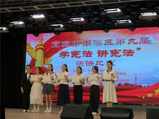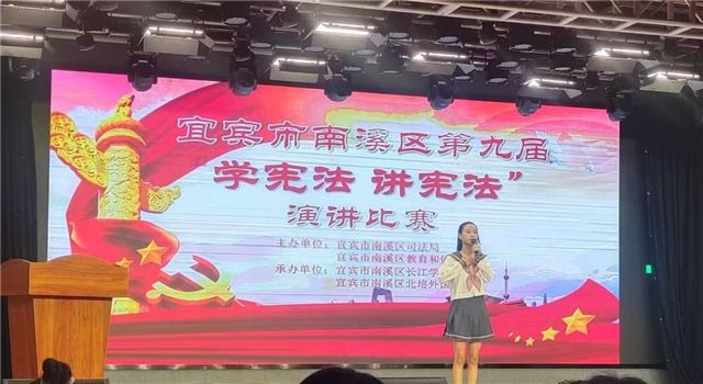 9月10日,宜宾市南溪区第九届“学宪法 讲宪法”活动在北大培文举行。经过激烈角逐,刘家初中九年级一班尹馨同学获得演讲比赛二等奖。