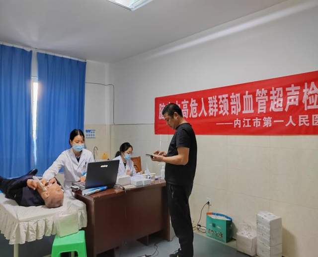 结合脑卒中高危人群筛查和干预项目,10月28日,内江市、县项目工作对城南社区居民继续开展脑卒中筛查,对前期筛查出的高危人群实施免费颈动脉超声检查,并进行脑卒中风险评估,给出个性化的干预、治疗建议。颈部血管超声检查可以更加精准地发现脑卒中高危人群是否有颈动脉狭窄以及狭窄程度,评估发生卒中的风险,以便及时给与干预治疗。