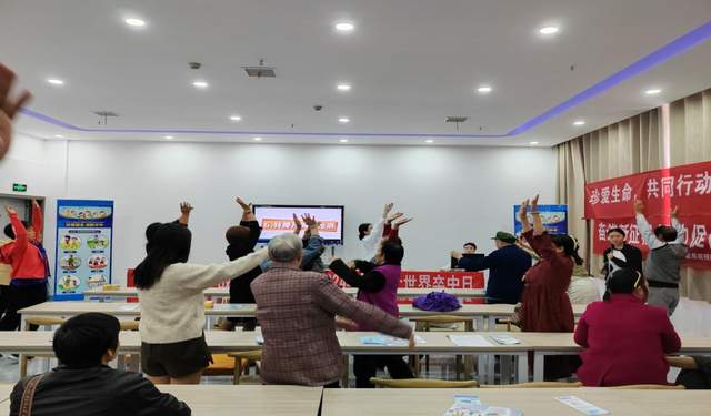 10月29日,内江市疾控中心联合内江市第二人民医院(脑血管疾病防治中心)、市中区疾控中心、市中区人民医院(慢性病管理中心)、市中区城东社区卫生服务中心、白马镇中心卫生院、史家镇中心卫生院(慢性病健康管理支持中心)在市中区城东街道交通路社区党群服务中心开展“卒中防治大讲堂”,邀请神经内科、康复科等多个专业专家对社区居民深入浅出地讲解卒中的识别、救治、预防以及中医康复治疗,激发了居民关注脑卒中、学习卒中防治知识的热情。同时,为响应今年“世界卒中日”主题,大力推动体医融合,推广适宜技术,市、市中区疾控中心工作人员现场教授居民“舒筋养骨操”,市中区人民医院医务人员现场教授“卒中防治保健操”,白马镇卫生院医务人员现场教授“健脑手指操”,带动现场群众参与到体医融合的行动之中,共同战胜卒中。
