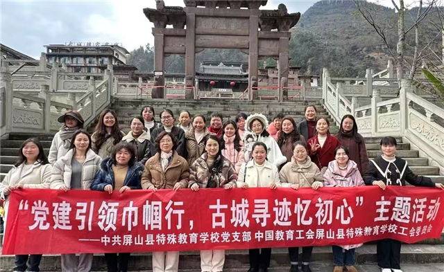为庆祝第115个“三八”国际妇女节,丰富教职工精神文化生活,3月8日,屏山县特殊教育学校党支部和工会组织全体女教职工前往马湖古城,开展“党建引领巾帼行,古城寻迹忆初心”主题活动。此次活动旨在通过参观古城、追寻历史足迹,激励女教职工在新时代教育工作中不忘初心、砥砺前行。