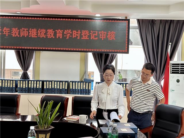 检查组在教科室主任殷金成的陪同下,通过听取汇报、查阅档案资料等方式,对学校教师的继续教育工作开展情况进行了全方位审查,并对学校继续教育整体工作和教师学时进行了客观评价和公正审验。
