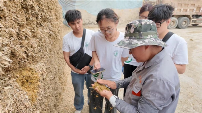 图为 周厂长为成员们讲解青贮玉米 王烁摄