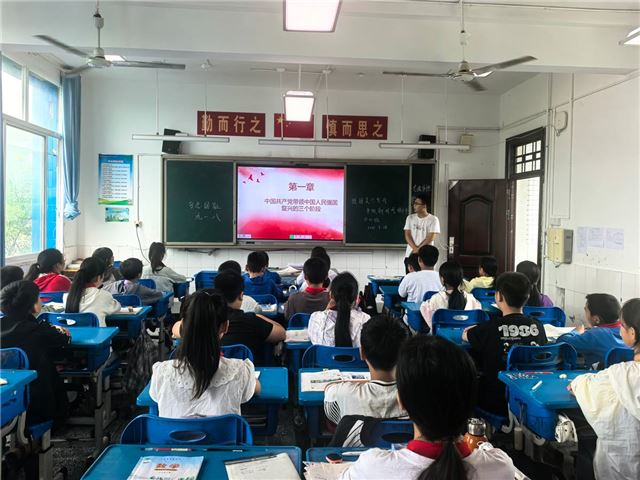 课上,中队辅导员先通过历史影像、文字资料,生动讲述“九一八事变”的经过,让队员们了解那段屈辱与抗争的历史,再通过视频短片、故事分享等形式,带领队员们回顾党和国家的发展历程,讲述新时代楷模的奋斗故事,让队员们深刻理解“强国复兴”的时代意义。最后,队员们围绕“如何做新时代好少年”并结合自身学习生活展开热烈讨论,队员们纷纷表示将铭记历史、刻苦学习,以实际行动传承红色基因。