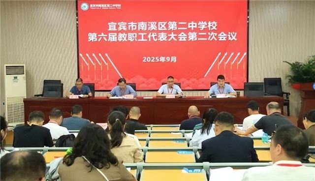 秋高气爽,丹桂飘香。9月29日上午10时15分,南溪二中第六届教职工代表大会第二次会议在学校阶梯教室召开。会议由工会主席左健军主持,全体教代会正式代表和列席代表齐聚一堂,共商学校发展大计。