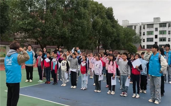 在离开校园之时,宣讲团还特别组织了一场庄重的宣誓仪式,让孩子们在铿锵誓言中进一步坚定传承 “两弹一星” 精神的信念,孩子们举起右拳,稚嫩的声音整齐划一,却充满力量,每一句誓言都掷地有声,回荡在校园的上空。有的孩子眼神中闪烁着坚定的光芒,仿佛已经将这份承诺深深烙印在心中。组织宣誓仪式,是希望通过这种庄严的形式,让孩子们更加深刻地理解两弹一星精神的时代价值,让爱国情怀和奋斗意识在他们心中生根发芽,激励他们在成长道路上以科学家为榜样,勇担时代使命。