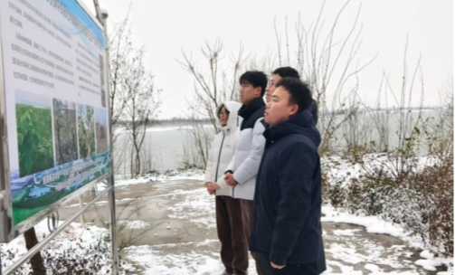 “雪再大,路再远,也要走到治理的第一线!”这是几位学子奔赴目的地的共同信念。数十公里的徒步带来的疲惫与呼啸着的风雪带来的寒冷交织,却怎么也磨不灭他们对生态治理的热忱与专业求索的初心。没有舒适的交通工具,只有厚重积雪与泥泞库岸边一步一个的脚印;没有温暖舒适的学堂,只有桑树边蜷曲着记录观察的背影;没有异地他乡与天寒地冻交织的迷茫与胆怯,只有搓红的双手爽朗的笑语。从清晨到日暮,从园地到村庄,他们详细记录,积极质询——水位涨落有什么影响?生态的自我净化功能怎样最大程度地得到利用?生态保护与民生需求重合在何处?每一个问题都源于对治理实效的关切,每一次交流都饱含扎根实践的真诚。他们用脚步丈量责任,以专业对接需求,在这片白雪皑皑的消落地续写着“以桑治消”的时代答卷。