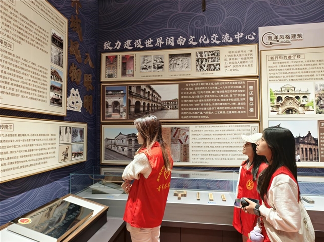 在作为明代海上丝绸之路重要起点的月港古镇,队员们漫步于古码头遗址,手抚斑驳石阶,遥想当年“涨海声中万国商”的往来盛景。古街两侧,传统“朱帘”轻掩,活化修缮的老建筑静立其间,呈现出历史肌理与当代生活交融的生动画面。海丝馆内陈列的古老航海图、远洋贸易遗存的异域钱币,系统勾勒出月港辉煌的对外交流史,让同学们深刻感受到闽地深厚而坚韧的海洋文明基因。