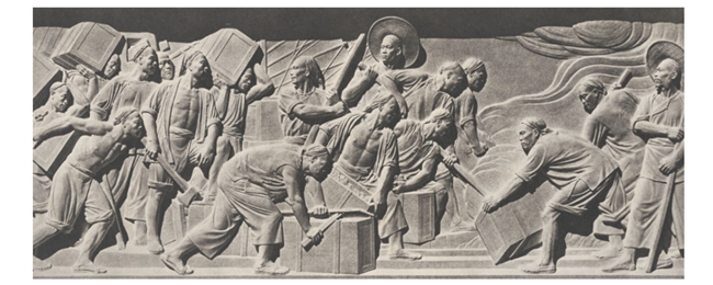 图1.人民英雄纪念碑浮雕:虎门销烟 曾竹韶著 1956年