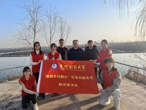 为积极响应国家“双碳”目标与乡村振兴战略,深入贯彻落实国家能源局与农业农村部关于支持“光伏+农业”融合发展的政策精神,探索清洁能源与现代农业协同发展的有效路径,安徽财经大学“皖北渔光队”于2026年1月15日至17日,赴安徽省淮北市濉溪县任集村,围绕当地“渔光互补”项目开展深度实践调研。