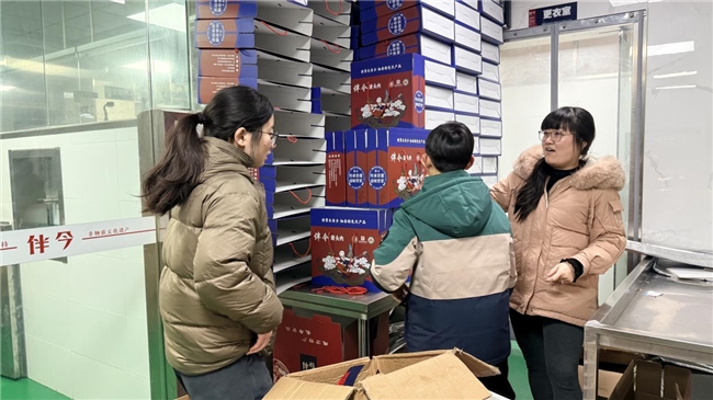 2月4日,江苏大学马克思主义学院青衿战队的团队成员走访了江苏省南通市长来食品有限公司,在新农人曹阳的带领下参观了其经营的伴今猪头肉加工车间、包装车间以及其在搬经镇的门店,近距离了解江苏省级非物质文化遗产——伴今猪头肉烹制技艺,深入聆听曹阳在农业发展道路上坚持不懈的奋斗故事,领悟其为乡村振兴不断奋斗的如火热情与实践密码。