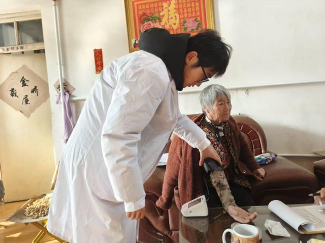 培训结束后,队员们分组走进社区与养老院,以拉家常的亲切方式普及冬季养生知识,组织老人们亲手制作艾草香囊、学习简易穴位按摩,同时为每位老人免费体检,建立详细健康档案,针对慢病患者给出个性化调理建议,用细节传递温暖与关怀。