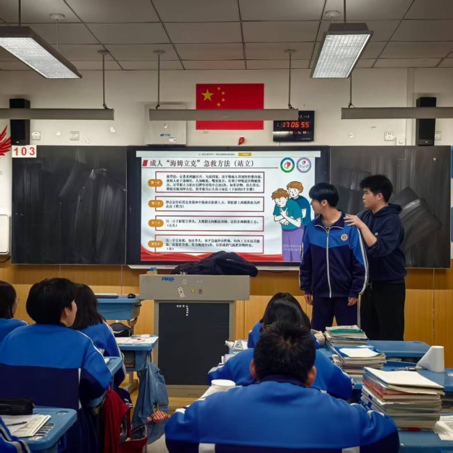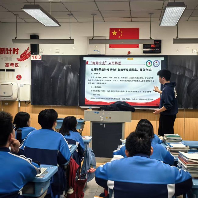 在城阳第二高级中学,队员们通过专题分享、中药材标本展示、知识问答等形式,向同学们普及中医药基础知识,现场示范海姆立克急救法、紧急止血等实用技能,结合青少年生长特点提供健康评价与生活建议,同时推介山东中医药大学办学特色,获得师生一致好评。