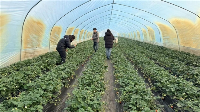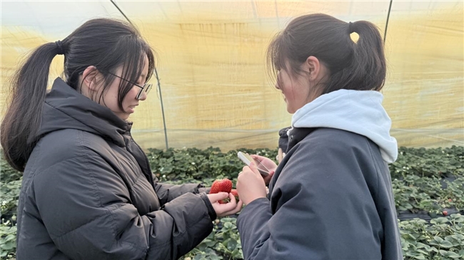 2月2日,江苏大学马克思主义学院青衿战队的团队成员走访了江苏省如皋市乡野一顷家庭农场,对新农人张兆想进行了深度访谈,并在其带领下参观了多种草莓的种植大棚,近距离观察不同品种草莓的种植环境,深入聆听张兆想在农业发展道路上奋斗不止的兴农故事,体悟其不断为乡村农业发展事业做贡献的坚定决心与拼搏精神。(通讯员 郭心瑶)