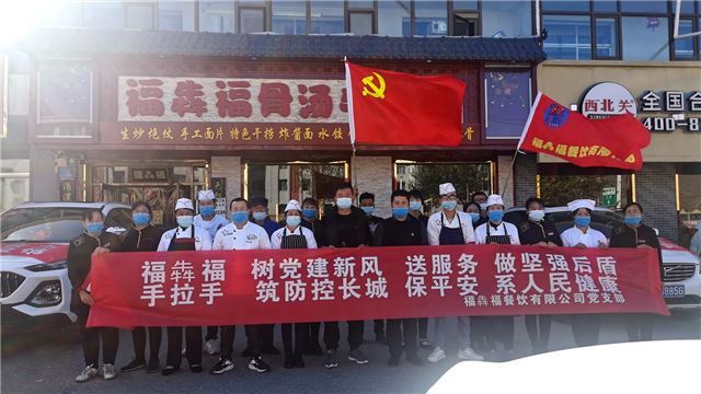福犇福餐饮党支部书记李寿林说“我们看到很多防疫一线的工作人员经常吃的泡面、馒头,天气这么冷却吃不上一口热乎的饭,我们感觉很心疼,就想出一份力,希望通过我的这份微薄之力,为家乡疫情防控作出一点贡献。”