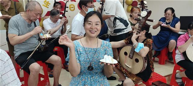 活动开始,社区器乐兴趣班的10余位学员献上了精彩的乐团演奏,其中最有特点的是用传统乐器演奏现代歌曲《生日快乐》。在愉快的音乐声中,和平街道办事处副主任刘刚、青城华府社区书记余敏和企业退休人员代表一起,点燃生日蜡烛为企业退休人员庆生,并一一分发蛋糕。