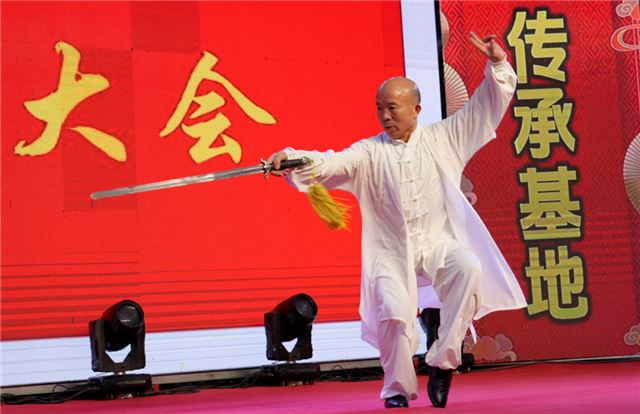 县武术协会主席游建宇宣布白溪镇武术传承基地成立。