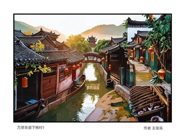 武夷山,万里茶道的起点。在这里生活了5年时间,王俊英与这里建立了特殊的感情,通过她的画笔,描绘着古村下梅的宁静与韵味。看着纽约时报广场大屏上的一幅幅油画作品,仿佛也同王俊英一起走进下梅,脚下的石板路诉说着岁月的故事,古老的建筑,历经风雨洗礼,依然屹立不倒,如同时光的守护者。每一条小巷都藏着惊喜,每一扇门窗都承载着过往。在这里,人们能感受到万里茶道的沧桑与辉煌,那是一段连接世界的传奇。