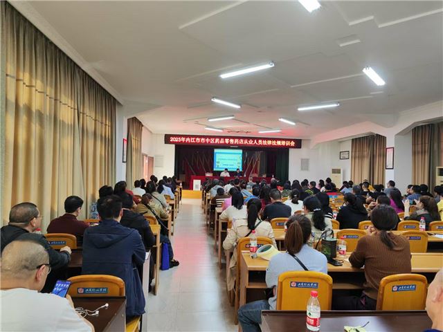 为强化零售药店药品质量安全意识,落实企业主体责任,规范药品经营行为,保障群众用药安全。2025年4月9日,内江市市中区市场监督管理局组织辖区内零售药店从业人员开展药品相关法律法规培训。零售药店从业人员140余人参加会议。