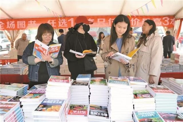 4月23日,2025年晋中市全民阅读活动启动仪式吸引了众多市民参与。图为市民在活动现场阅读购买图书。 记者 程 婧 摄