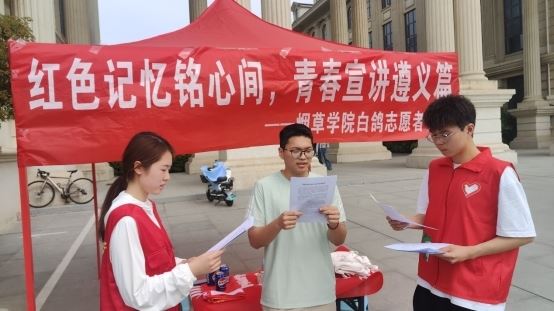 为赓续红色血脉,弘扬遵义精神,近日,烟草学院白鸽志愿者协会的志愿者举办了“弘扬遵义精神,争做时代新人”主题宣讲活动。活动通过互动宣讲等形式,重温党的光耀历史,以行动诠释新时代青年的责任担当。