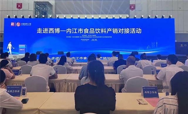 近日,走进西博——内江市食品饮料产销对接活动在成都举行。内江经开区党工委委员、管委会副主任梁洪源就食品饮料深加工上下游链接作推介。