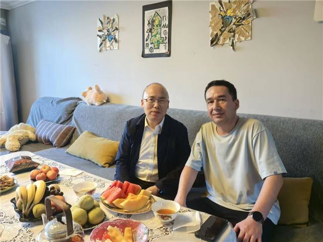 中建新疆建工设计分公司党总支副书记、总经理、董事陈忠东走访慰问结亲对象第五设计院设计师阿布都热依木·克尤木,在向他致以节日问候和诚挚祝福的同时,详细了解他近期工作生活状况,拉家常、深交心,交谈中叮嘱遇到困难及时沟通,鼓励他要持续为企业发展发光发热,做出自己应有的贡献。