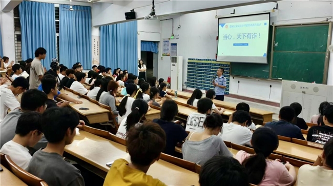 在学园校区北区社区,反诈专题讲座首先拉开帷幕。警官借助真实案例,深入浅出地介绍了冒充熟人诈骗、任务返利、冒充客服理赔诈骗等多种常见诈骗手段,让同学们直观认识到电信网络诈骗的多样性与隐蔽性。针对大学生的生活特点,警官特别分析了诈骗分子如何利用新生的好奇心与贪小便宜心理实施诈骗,提醒同学们日常生活中需时刻保持警惕。"你不是不会被骗,而是适合你的剧本还在路上"这句警示语给在场新生留下深刻印象。
