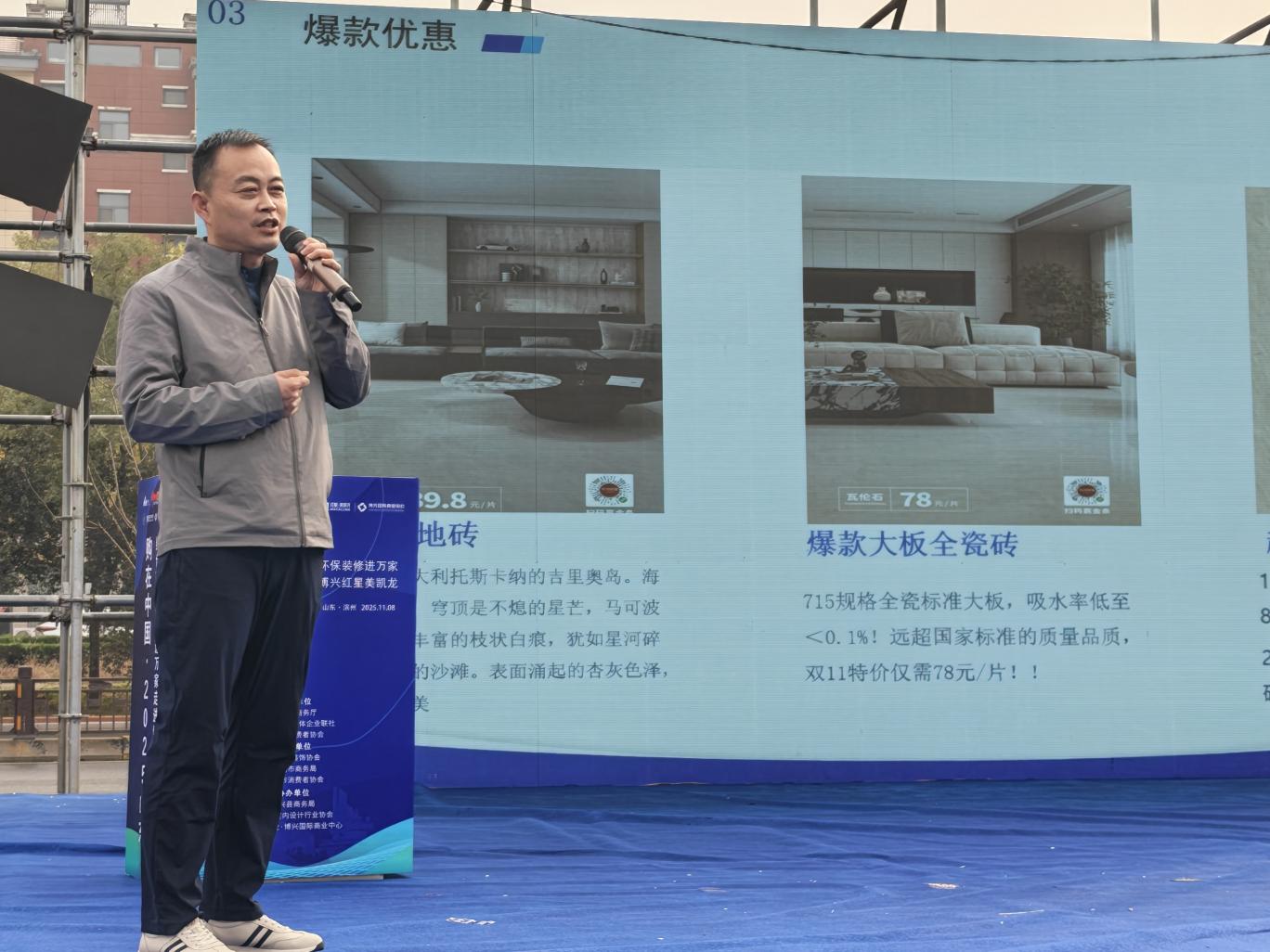 参与此次促消费活动的企业代表现场发布重磅优惠政策,覆盖瓷砖、地板、门窗、卫浴、家具等家装核心品类,以旧换新补贴、满减让利、售后延保等多重福利叠加,实打实降低消费者家装成本,让绿色环保装修更具性价比。