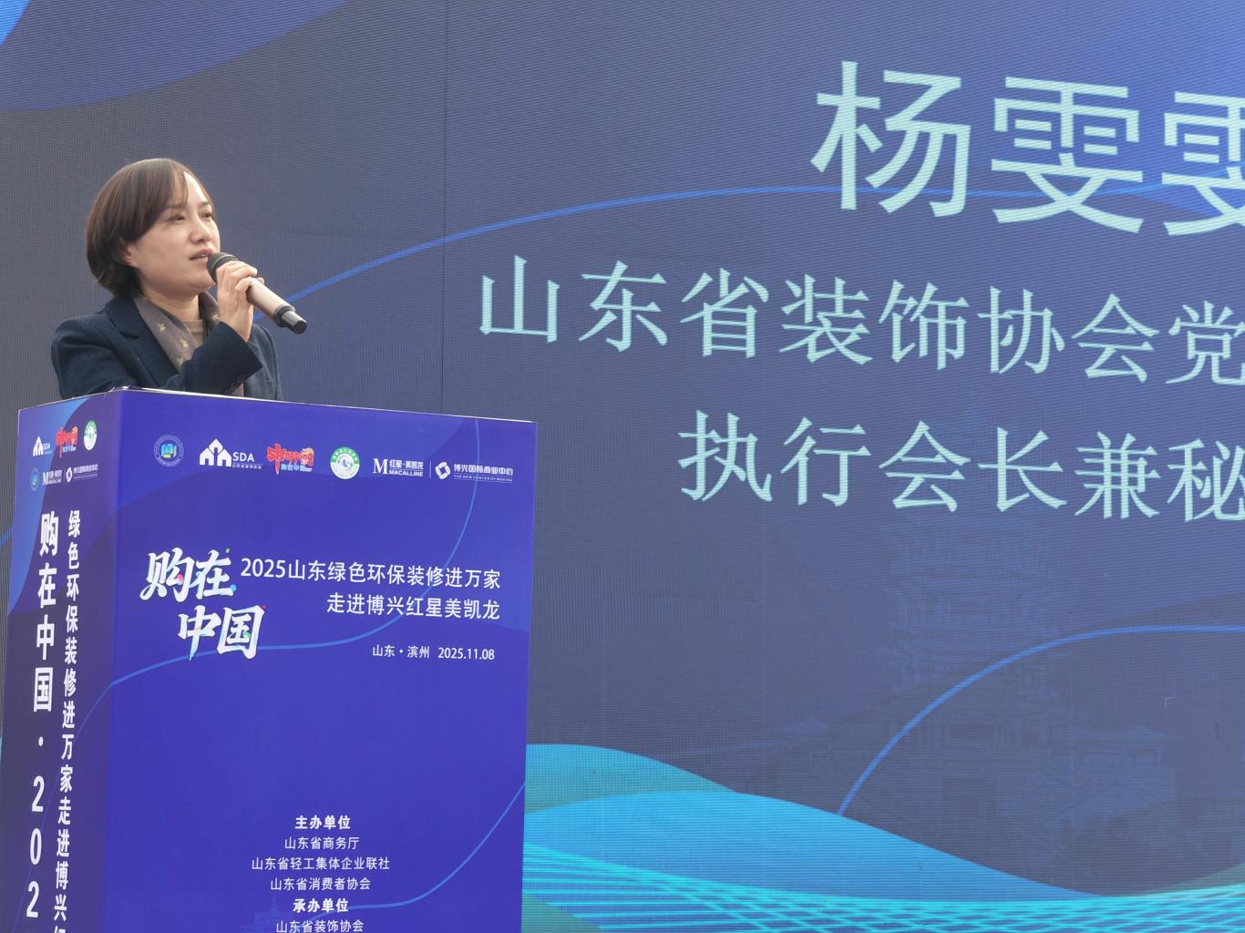 山东省装饰协会执行会长兼秘书长杨雯雯在致辞中提到,聚焦行业发展升级,提出绿色环保是装饰行业高质量发展的必然趋势,唯有坚守环保底线、深耕绿色工艺与材料创新,才能回应群众对健康家居的迫切需求,推动行业在转型中实现可持续增长。