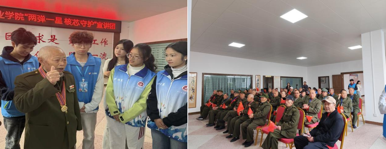 为弘扬“两弹一星”精神、赓续红色血脉,近日,智慧护理学院“核‘芯’守‘护’”宣讲团走进德阳市光荣院开展志愿宣讲活动,为老兵们带去了生动详实的讲解与温情细致的陪伴,丰富了老兵们的精神文化生活。