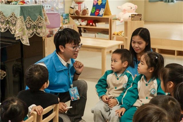 以趣味启萌芽,向幼儿播火种。在惠州学院附属幼儿园,宣讲团以通俗形式开展科普宣讲,将红色传承与科学启蒙结合。宣讲员用幼儿易懂的语言,讲述老一辈科学家戈壁攻坚、算盘算核数据的故事,孩子们被艰苦岁月里的坚守打动,满眼都是对科学家的敬佩、对国家成就的自豪。