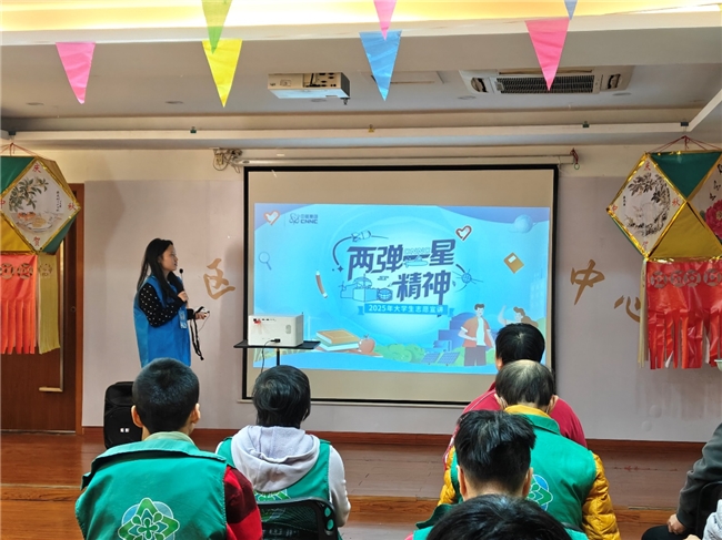 11月21日上午,东区全民公益园举办“两弹一星”精神专场宣讲活动。活动由电子科技大学中山学院人文社会科学学院青年宣讲团主讲,吸引了众多残疾人朋友参与。