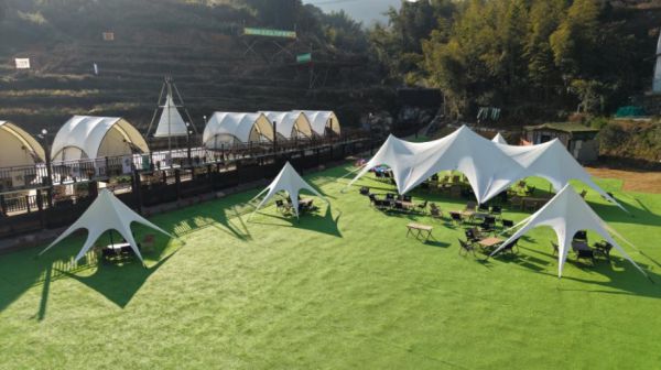 开阔场地,将野趣与舒适完美融合,让露营告别“风餐露宿”的窘迫。营地内设有酒吧,还能体验烧烤、泡茶、品尝咖啡与特色小吃,白天可在营地享受自然野趣,待到夕阳西下,夜幕降临,营地瞬间变身浪漫乌托邦,在星空与山风的陪伴下,尽享休闲时光。