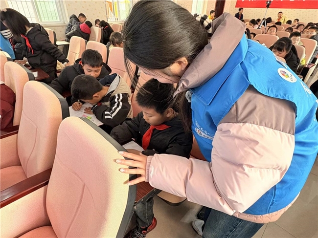 志愿者刘元庆带来了一场轻松活泼的心理健康互动课。通过“情绪猜猜乐”“情景小剧场”等方式,孩子们学会识别与表达情绪,掌握简单的倾诉与倾听方法。“自信手掌”和“乐观转换”环节鼓励孩子们发现自身优点,学习积极面对挫折,在欢声笑语中实现了一次温暖的心灵对话。