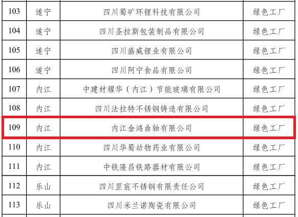 1月23日,省经济和信息化厅发布了《关于2025年度绿色制造梯度培育省级名单的公示》,经企业(园区)评价、市(州)审核推荐、专家评审等程序,位于内江经开区的内江金鸿曲轴有限公司作为绿色工厂,上榜2025年度绿色制造梯度培育省级名单。