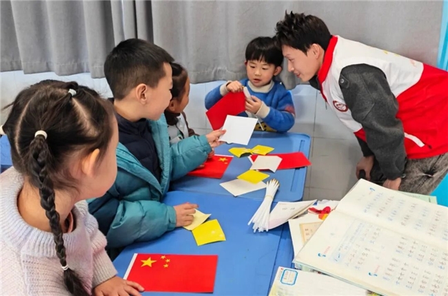 在“祖国旗帜在我心”环节,志愿者们通过生动讲解与趣味互动相结合的方式,带领孩子们逐一认识党旗、国旗、军旗、团旗的鲜明标识,深入解读每一面旗帜背后的历史渊源与精神象征。同时,志愿者手把手指导孩子们动手裁剪、粘贴制作国旗,在实操过程中引导大家深刻理解国家发展与个人担当的紧密联系,让红色基因如种子般在童心深处生根发芽,厚植家国情怀。