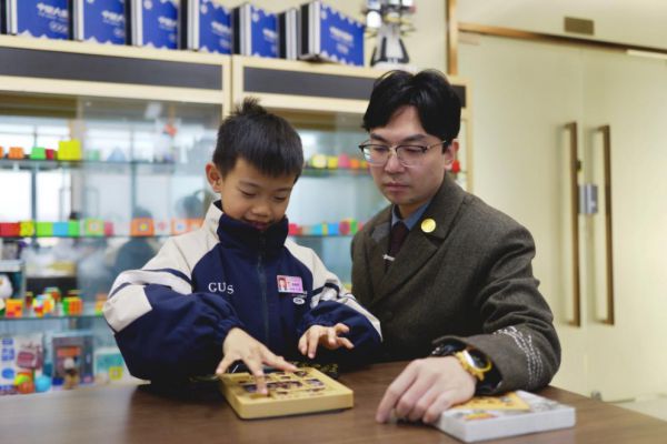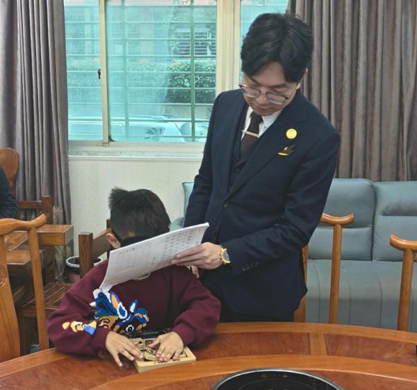 鲜为人知的是,这“一瞬封神”的背后,是师者的精准雕琢与家庭的默默守护,铺就的一条满是热爱与坚持的成长之路。潘赫然与华容道的结缘,始于一场偶然的聚会。彼时,WRCA益智类项目认证官、50项世界纪录获得者叶佳希老师正在现场练习三国华容道,滑块在他指尖灵活穿梭,曹操、关羽等三国人物棋子有序腾挪,这一幕瞬间吸引了一旁年仅6岁的潘赫然。他瞪大好奇的眼睛,一动不动地盯着棋盘,直到叶佳希完成一局,才怯生生地凑上前询问:“老师,这个‘会动的三国棋盘’真有意思,我能试试吗?”