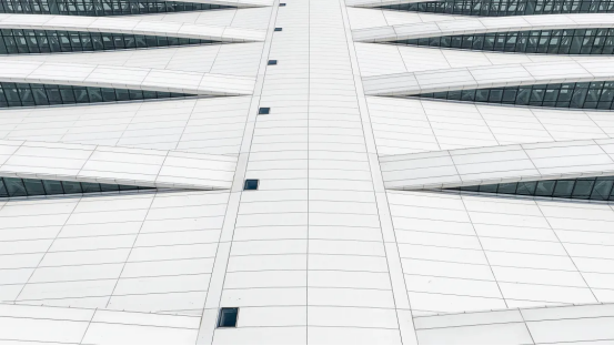 铝复合板金属幕墙广泛应用于墙面、檐口及室外吊顶,面对多角度折边、异形曲面等施工难题,设计团队通过精准深化设计与三维建模,让每一块板材都高精度拟合设计轮廓,尽显建筑挺拔精致的现代气质。