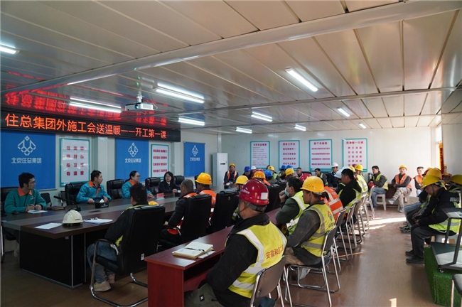 此次活动是北京住总集团外施企业工会联合会延续六年的龙抬头系列暖心服务的延续,更是精准对接外施职工需求、筑牢复工复产安全防线的具体实践。在“开工第一课”的课堂上,项目部安全总监结合工程现阶段施工部位,围绕“集团安全帽行动”相关要求,讲解高空作业、临时用电、动火作业等安全防控重点,并通过真实案例解读,做安全警示教育。课后,北京住总集团外施企业工会联合会为外施职工送上慰问品,详细询问大家的工作生活情况,了解实际需求与困难,让外施职工感受到来自企业的关怀与温暖。