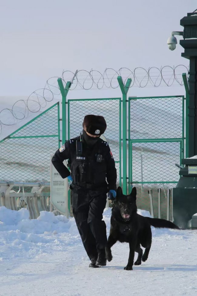 图为实践队成员在中蒙边境线旁,走近边防民警与警犬并肩值守,致敬坚守岗位的守护者,感悟责任担当。庞雨桐 供图